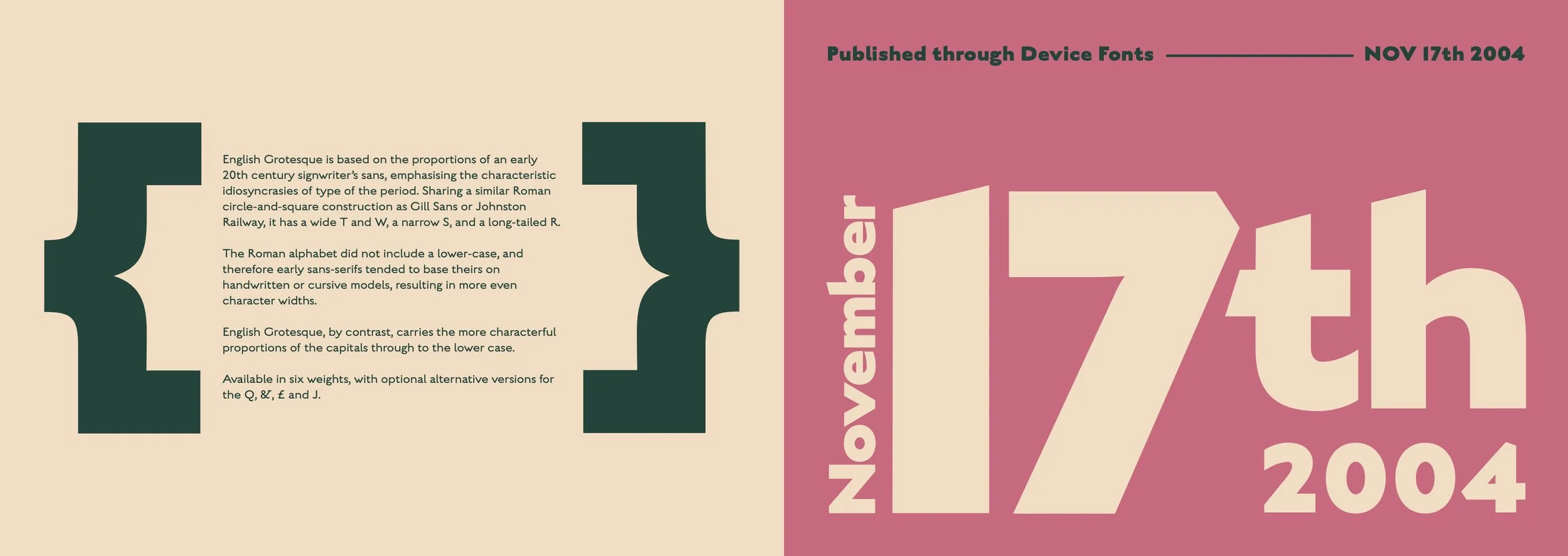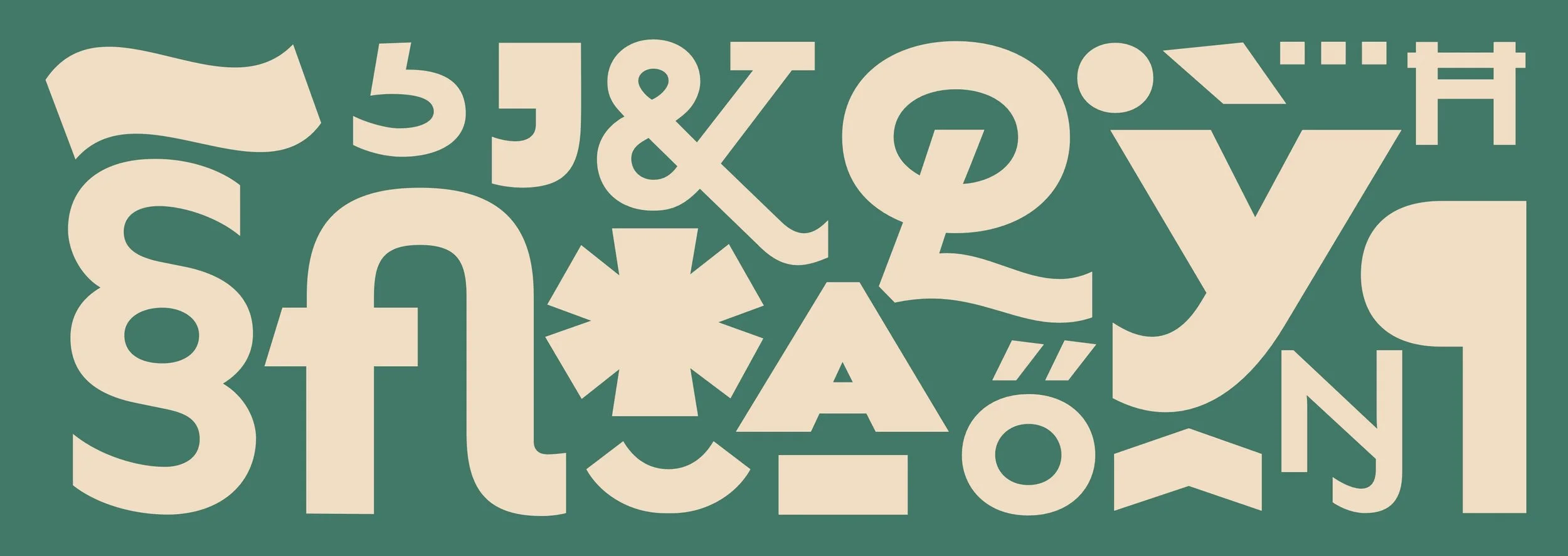 Displaying the font’s versatility and range, and highlighting key features, using only the font itself, and complimenting colours.